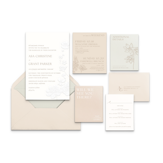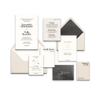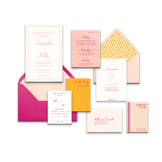 On any Collection piece listing, click the “Make It Your Own” box before checking out, and we’ll reach out with details on the customization process. Once we hear more about your vision for your invitations, we can share a design fee for your project.