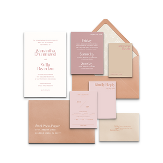 We will ensure all your choices fit together seamlessly. Color selections are simply a guide — we'll make sure everything looks amazing together before sharing your invitation suite design proof.