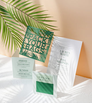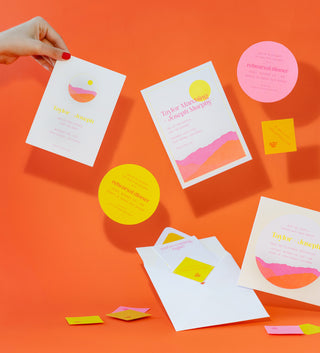 Fiery ombre sunsets, vibrant blue ocean waves, shimmering golden sands — for us, nature is the source of all inspiration. In an effort to maintain the natural beauty that inspires us so much, ten trees are planted for every invitation suite order placed. Our house letterpress paper is tree-free, made from recycled cotton linters, a byproduct of the textile industry.